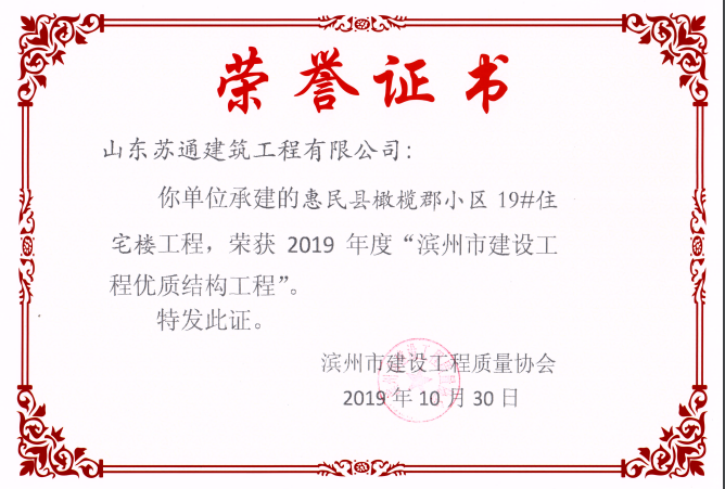 山東蘇通建筑工程有限公司,創建于2009年8月。目前擁有房屋建筑工程施工總承包壹級、市政公用工程施工總承包叁級、水利水電工程施工總承包叁級資質,同時還具有建筑裝修裝飾工程專業承包貳級、消防設施工程專業承包貳級、鋼結構工程專業承包叁級、建筑機電安裝工程專業承包叁級等專業承包資質。 公司總部坐落于山東省濱州市濱城區黃河十二路877號,現有辦公面積約2000平方米,機構設黨支部工會辦公室、總經理辦公室、綜合辦公室、工程管理部、經營預算部、資產財務部、材料設備部、運行管理部、法律事務部等多個職能部門。公司管理體系已經通過了GB/T 19001及GB/T 50430質量管理體系、GB/T 24001環境管理體系(EMS)、GB/T 28001職業健康安全管理體系(OHSMS)等體系的認證。 公司承建完工了濱州市建大教師之家、建大清怡苑、香格里拉水岸綠城住宅小區、雙泰建大城、曲阜崇德公館住宅小區、北海新區御景藍灣住宅小區、沾化德榮國際華城住宅小區、惠民橄欖郡住宅小區等工程項目,目前在建工程項目有:濱州市頤高國際電子商務產業園住宅小區項目、濱州市東盛國際項目、高新區建大中央華府住宅小區項目、濱州市融匯新里程住宅小區項目、濱州市建大秦皇壹號住宅小區項目、濱州市森林花...
